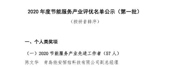 爭創行業首位度 青島能安恒信科技公司榮獲2020年度全國節能服務產業四項獎項
